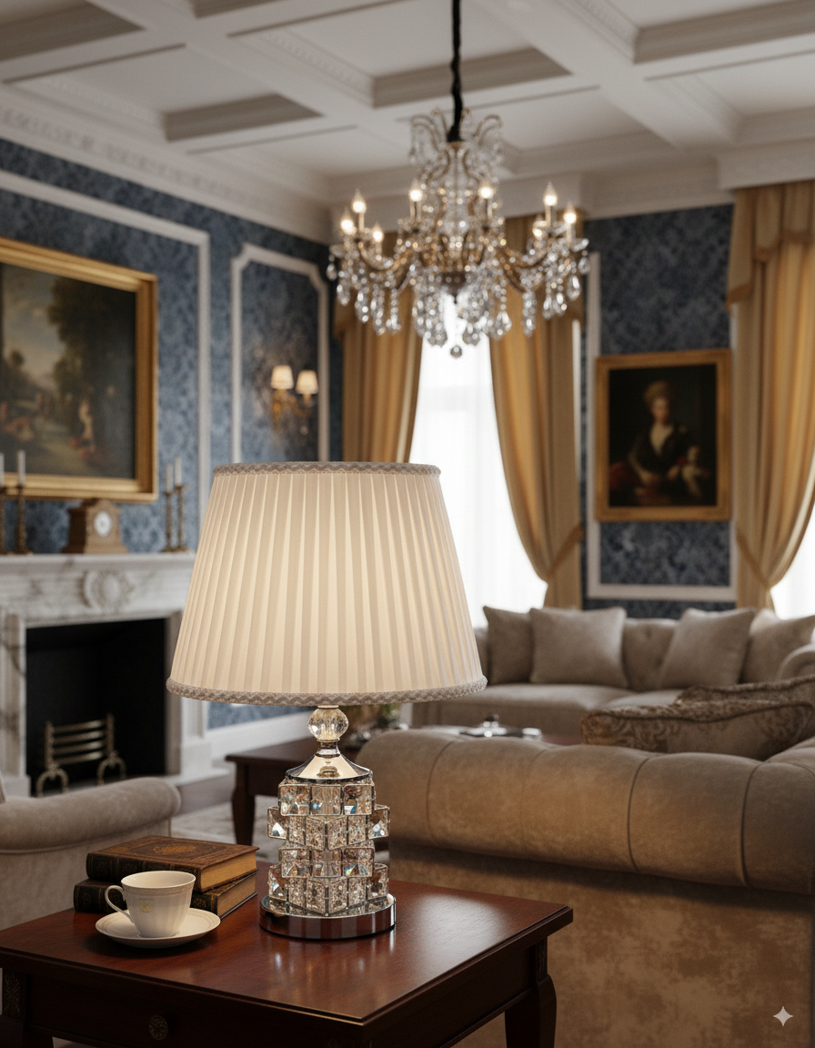 Aggiungi un tocco elegante a qualsiasi stanza con questo lumetto. La sua base con cubi di vetro non solo aggiunge un tocco di lusso, ma fornisce anche una luce calda con la sua lampada. Un design classico ed elegante per uno stile senza tempo.