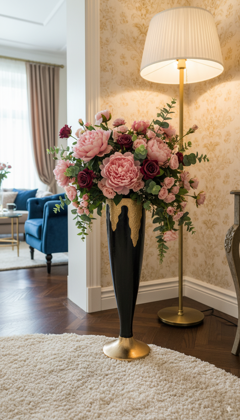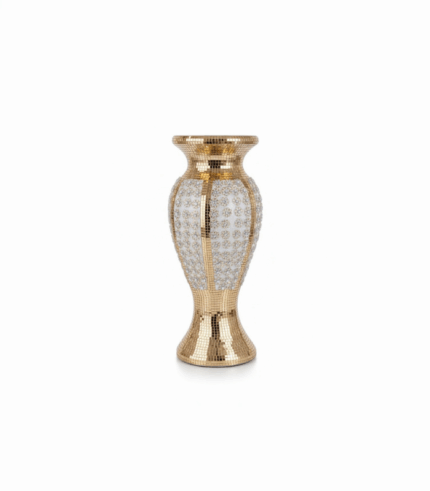 Questo elegante vaso alto nero e oro è perfetto per arricchire qualsiasi ambiente con un tocco di classe. Realizzato con materiali di alta qualità, è una scelta elegante e resistente. Aggiungi personalità alla tua casa o al tuo ufficio con questo bel pezzo che non passa inosservato.