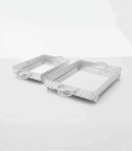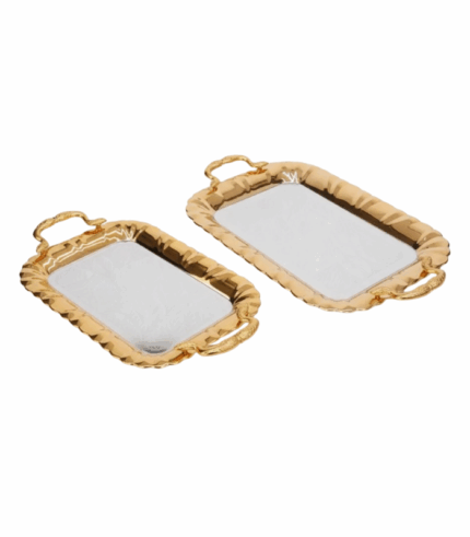 Scopri il nostro elegante Vassoio Specchiato disponibile in due splendide finiture: oro e argento. Questo vassoio, perfetto per aggiungere un tocco di classe a qualsiasi ambiente, è realizzato con materiali di alta qualità e presenta una superficie lucida che riflette la luce, creando un effetto visivo affascinante.